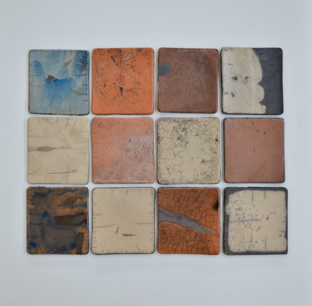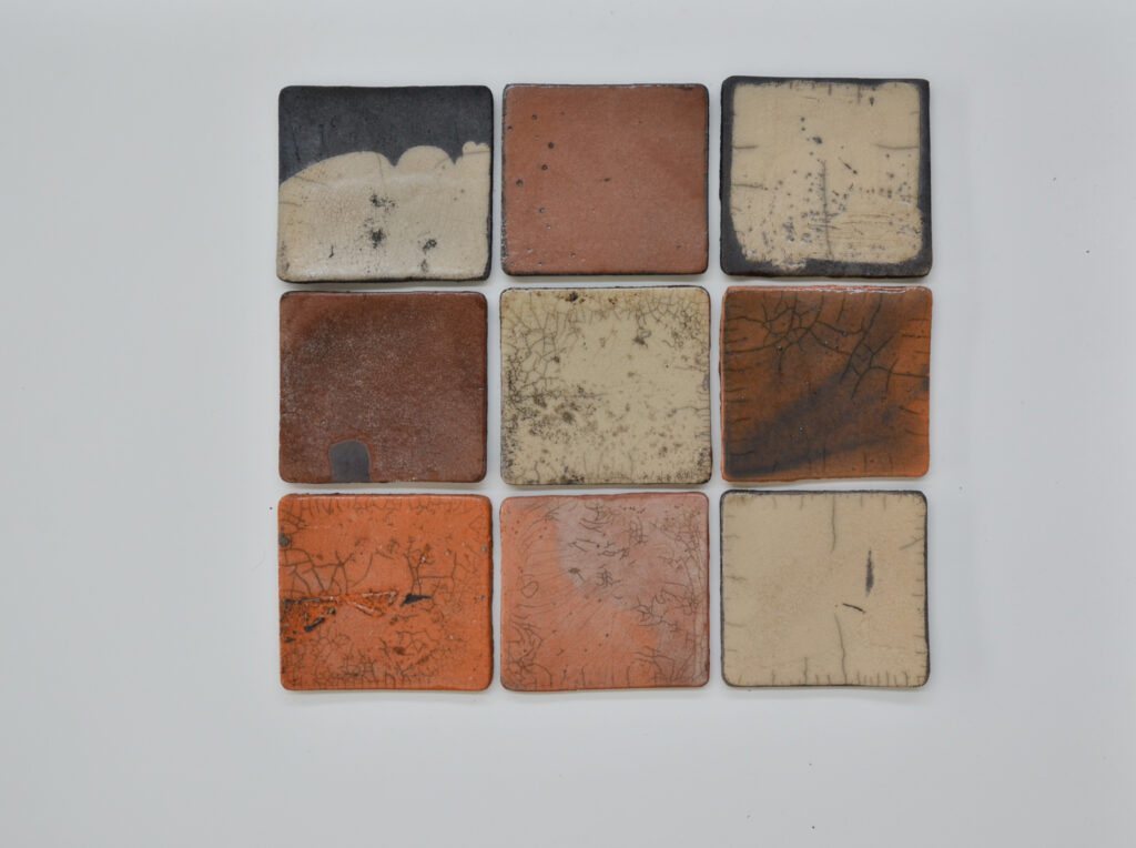 Raku Fliesen mit 3 Tonfarben, transparent und blau glasiert, im Rakuofen gebrannt